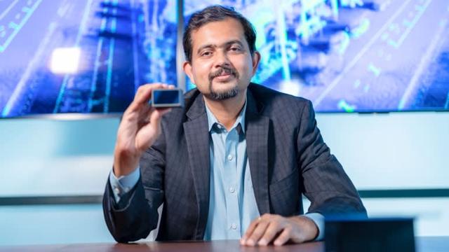 Velodyne 首席执行官 Anand Gopalan 持有公司新的手掌大小的激光雷达装置。